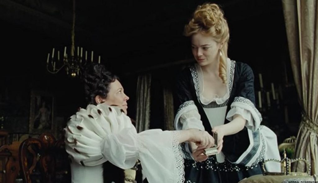 El guion nos retrata la intensa relación entre la Reina Anne y su mejor amiga y consejera real Sarah, Duquesa de Marlborough, quienes tienen un sistema de dependencia y complicidad que funciona de maravilla para los intereses políticos de Sarah y para las carencias emocionales de Anne. Reflejando con humor, sutileza y elegancia los matices de una vida solitaria y desamparada donde a pesar del lujo y las comodidades de la realeza, la soledad es el único enemigo al cual la Reina debe vencer. En medio de esta decadencia embellecida llega Abigail quien diciendo ser prima de Sarah, comienza a planificar su ascenso entre los nobles ganándose la confianza de la reina sin ningún tipo de pudor ni remordimiento transformándose así la relación entre Sara, Anne y Abigail en un triangulo de desconfianza, dudas y desamor.